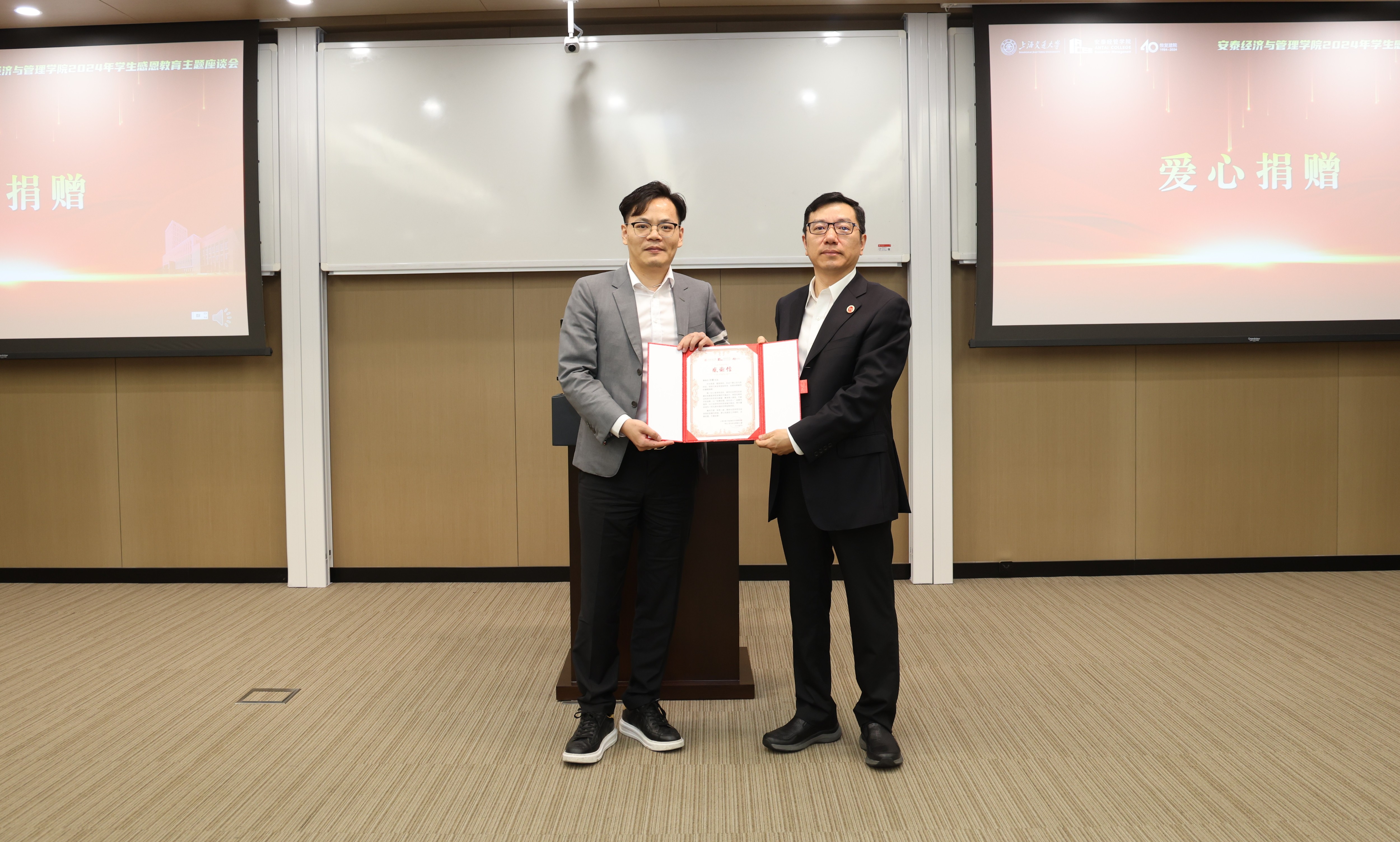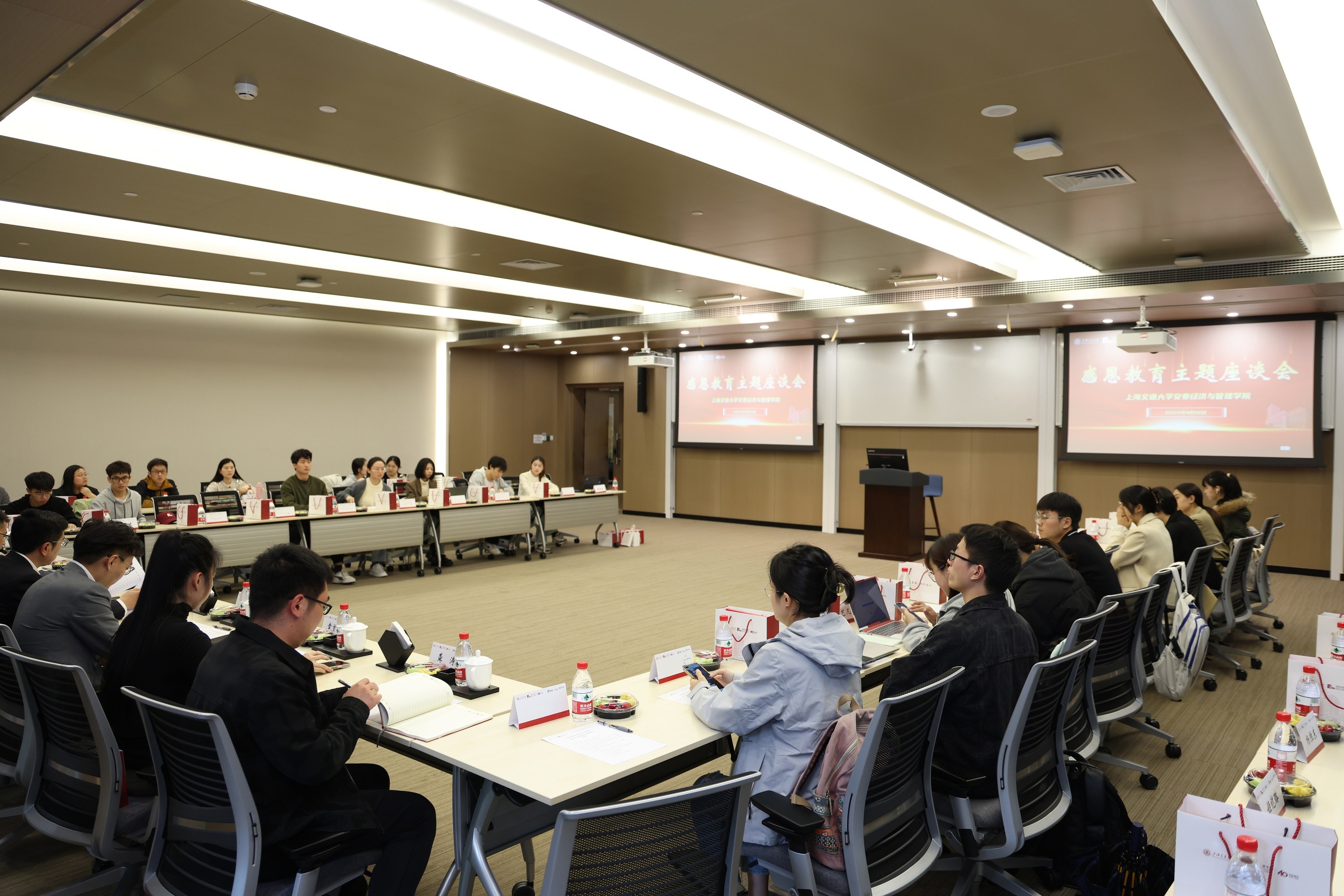 4月12日,安泰经管学院2024年学生感恩教育主题座谈会在徐汇校区安泰楼B201召开。院党委书记姜文宁、副书记郭非,2023届EMBA南洋班校友、苏州伊威伊智能科技有限公司总经理、江苏厚道数控科技有限公司战略副总经理王卿,学生服务社成员、相关同学代表,各年级思政及班主任代表等50余人出席会议。会议由院学生工作与职业发展办公室主任王璐怡主持。